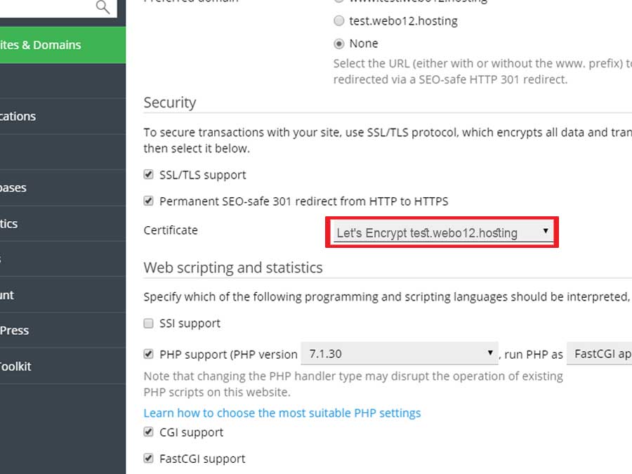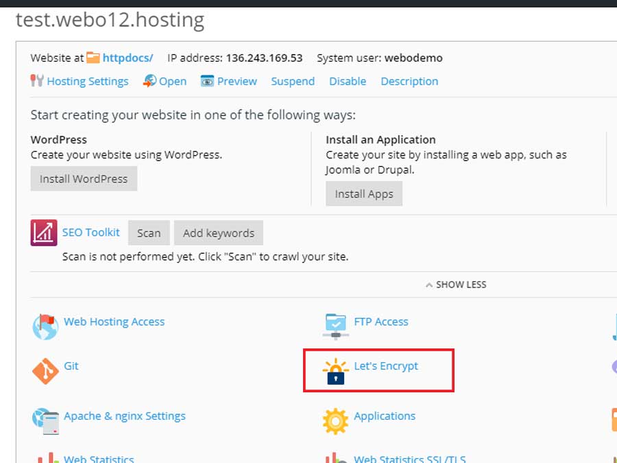 Locate the domain on which you want to enable and click on Let’s Encrypt option.