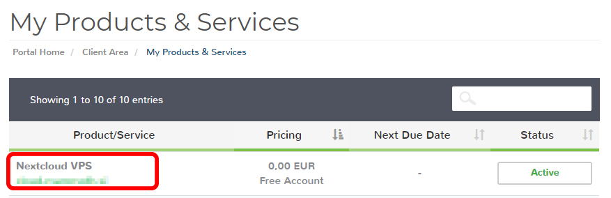 This will open a list of your services. Check the list and look for your Nextcloud Server as shown on the picture below.